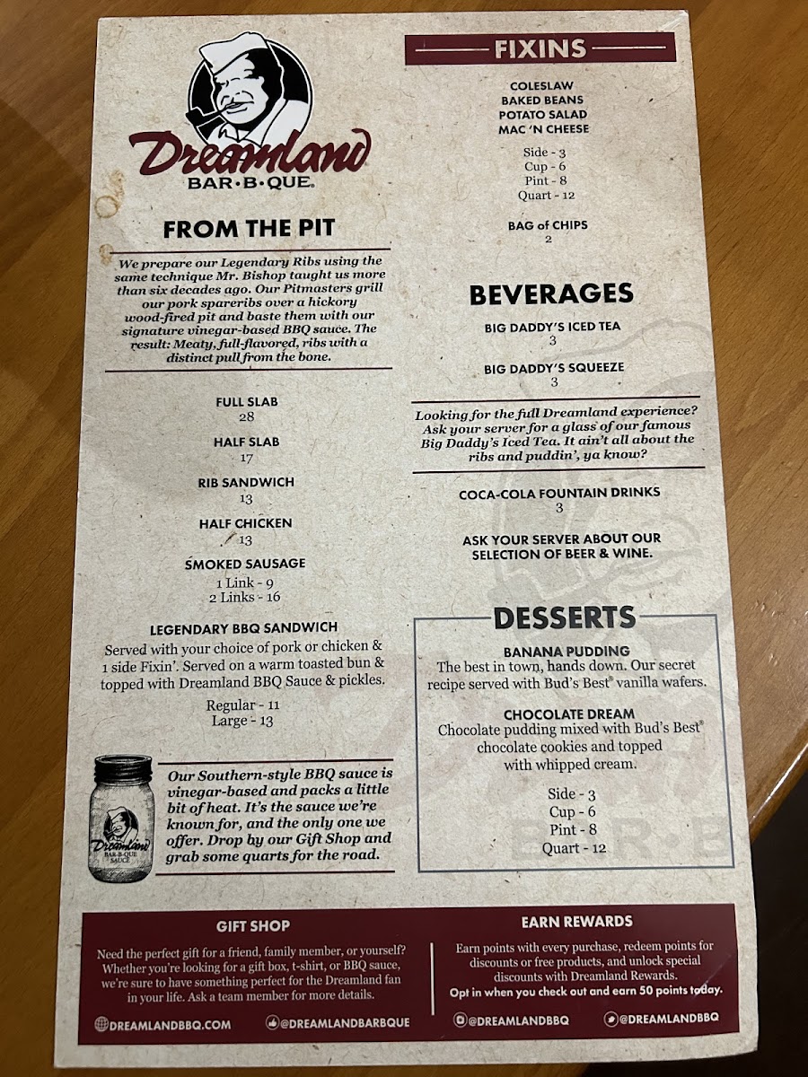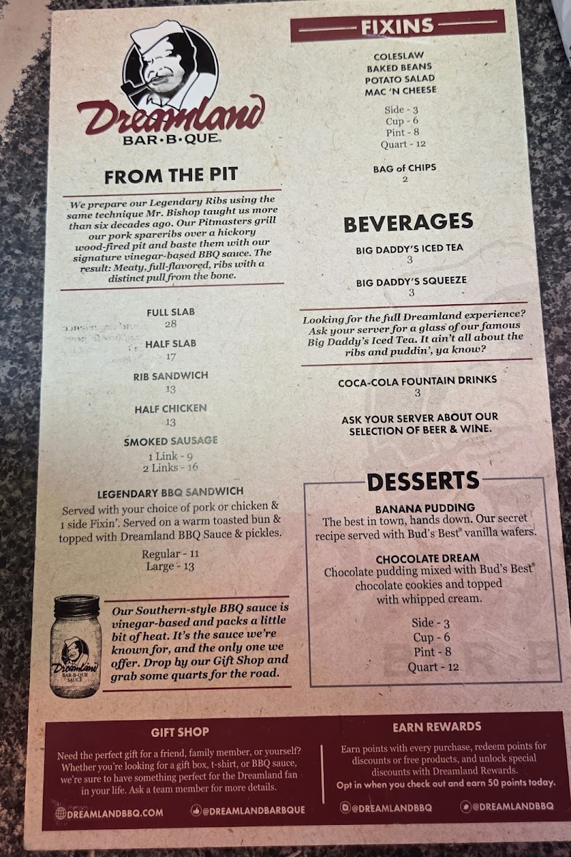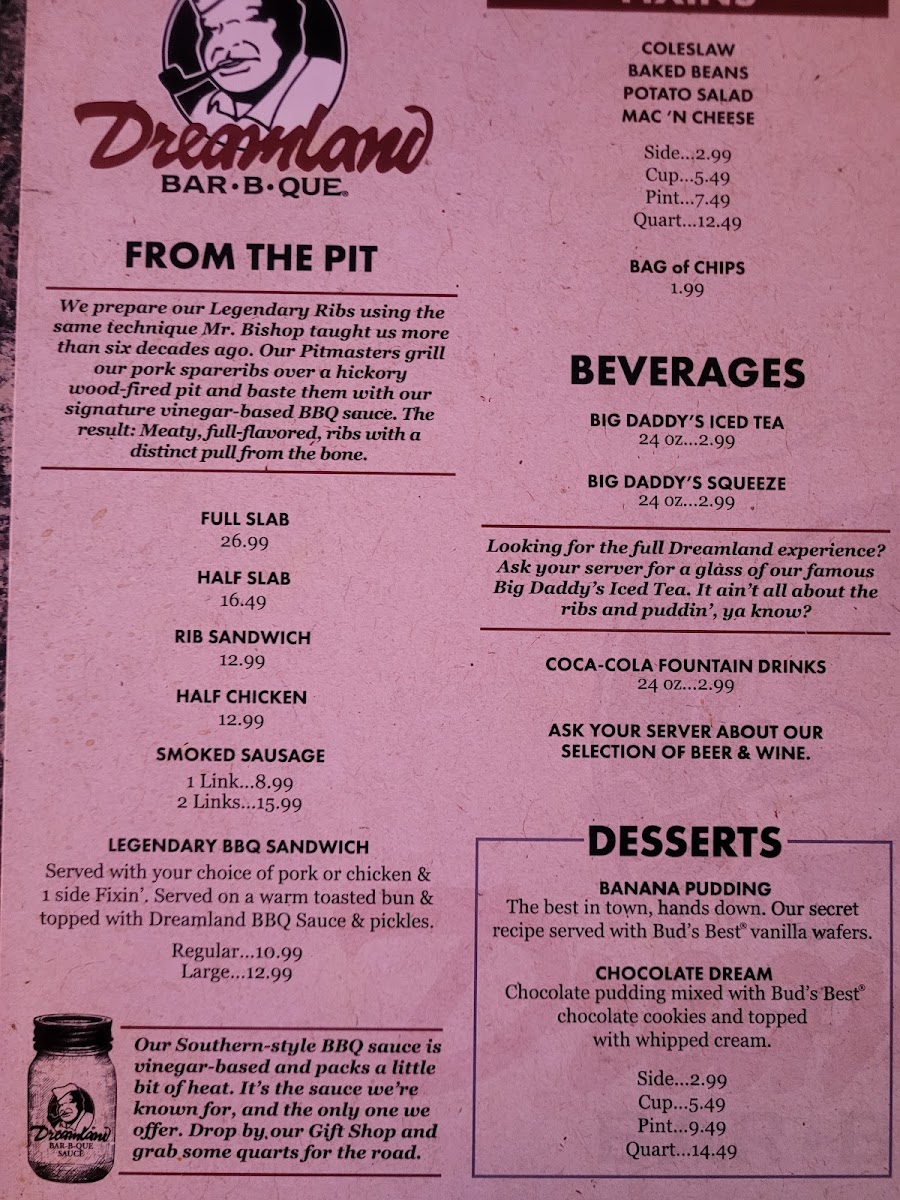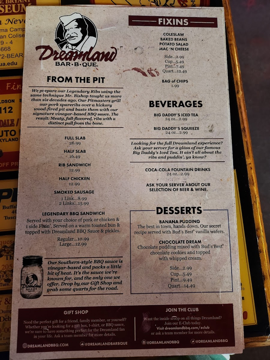 Introducing the Menu at Dreamland BBQ - Tuscaloosa